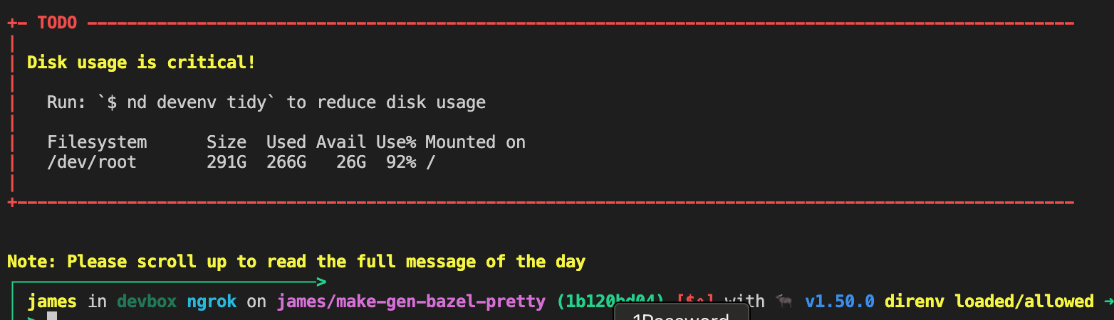 Speaking of which: nd devenv tidy helps developers clean up their devboxes (all those builds pile up plenty of cached outputs).