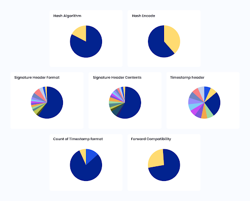 These variations range from the clear and simple — like timestamp format — to the more complex and subtle such as the ordering of fields used in the signature. Each of these change the verification process in a significant way.