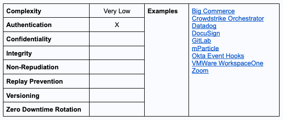 24% of webhooks offered no authentication or rudimentary authentication controls — shared secrets, basic auth, bearer tokens, or verification token — and no message signature validation, which is even worse than SHA1.