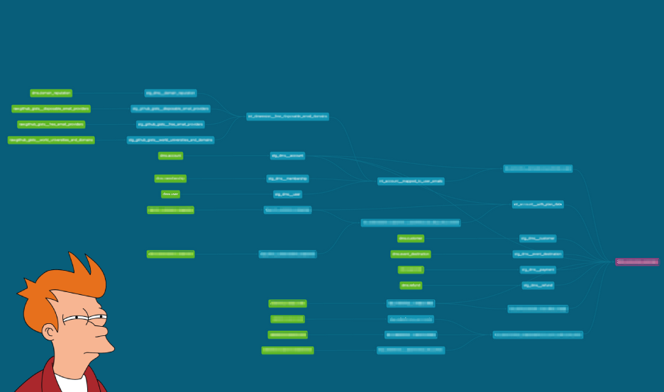 It was also hard to impossible to reason about our models, since we lacked any of dbt‘s (or a comparable tool's) creature comforts, such as lineage, documentation, version control, auditing, tests, and so on.