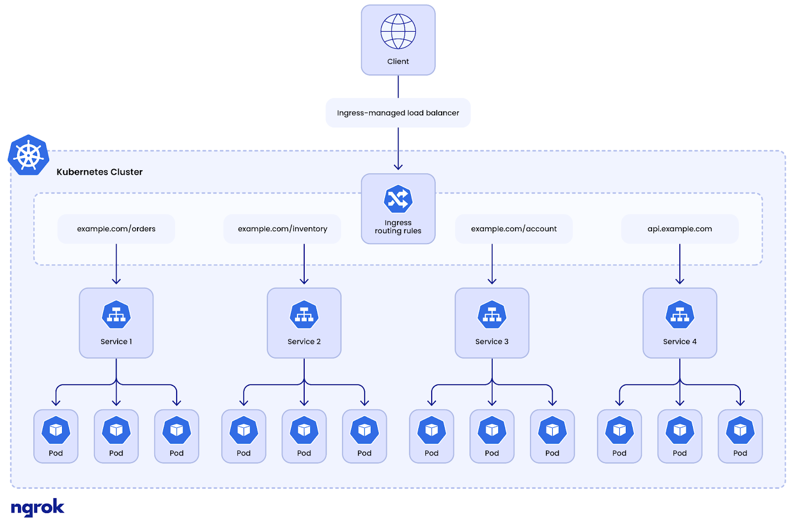 For example, you can define rules to direct traffic based on specific domain names or subdomains, ensuring that the correct backend services handle requests for different parts of your application. Additionally, you can use URL path-based routing to send requests to multiple services depending on the URL path specified by the client.