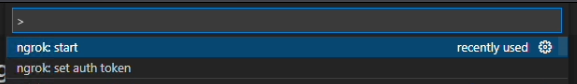 After the installation is done, you can confirm it's ready by launching your command palette (Cmd+Shift+P / Ctrl+Shift+P) and typing ngrok. You should see a list of capabilities and options you can do from within VSCode ❤️
