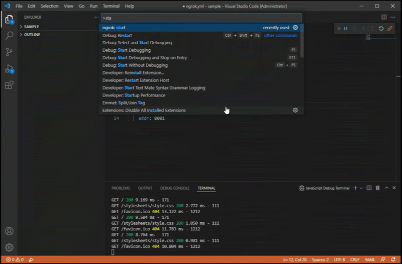 Thanks to Phil Nash's VS Code extension, I can use VSCode to launch and manage my ngrok tunnels straight from the command palette!