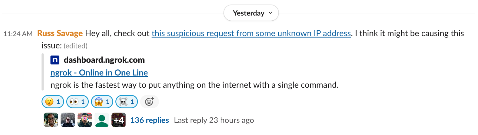 Production incidents are inevitable and the best way to mitigate them quickly is with the right tooling. When you are actively investigating an incident, the ngrok Traffic Inspector can be used to see exactly what traffic is going to your service so that you can respond appropriately.