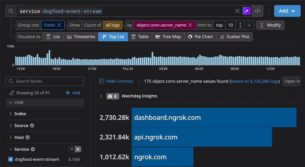 When we moved to ngrok, the part of the infrastructure responsible for handling inbound traffic shifted from our Kubernetes cluster to ngrok’s cloud infrastructure. Instead of logging requests from a pod inside our cluster, we now needed a way to observe requests handled by ngrok’s global points of presence.