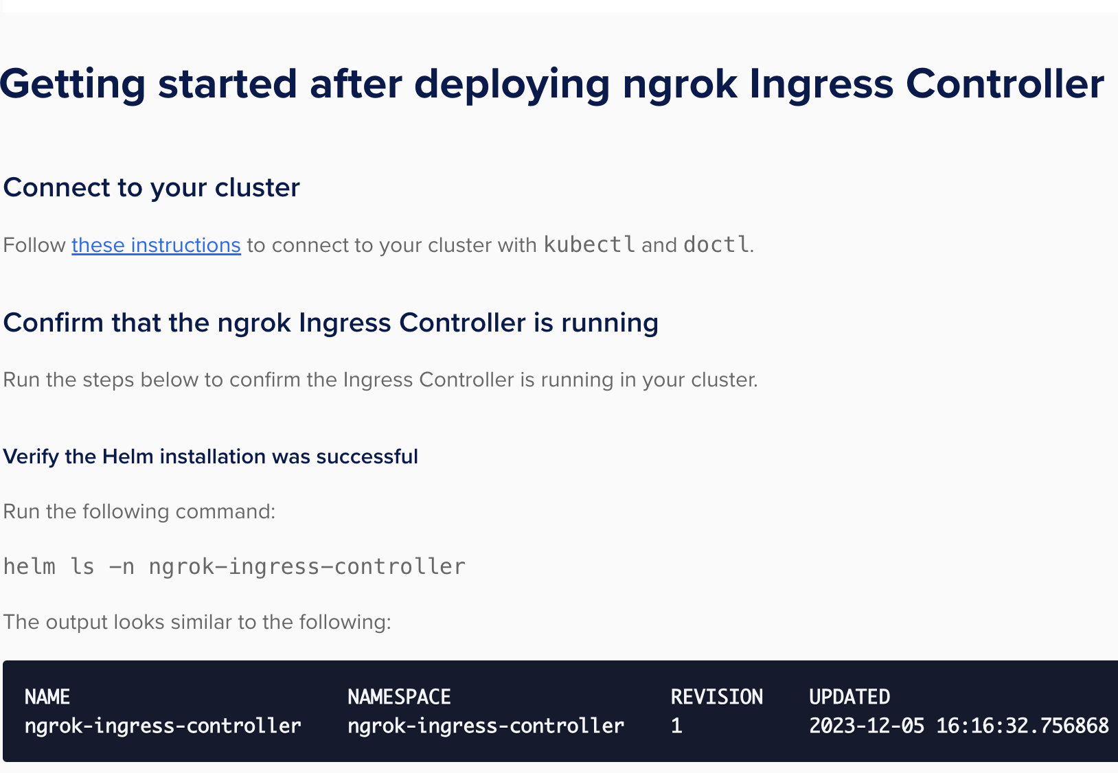 ngrok Ingress Controller for Kubernetes in the DigitalOcean Marketplace includes post-deployent steps