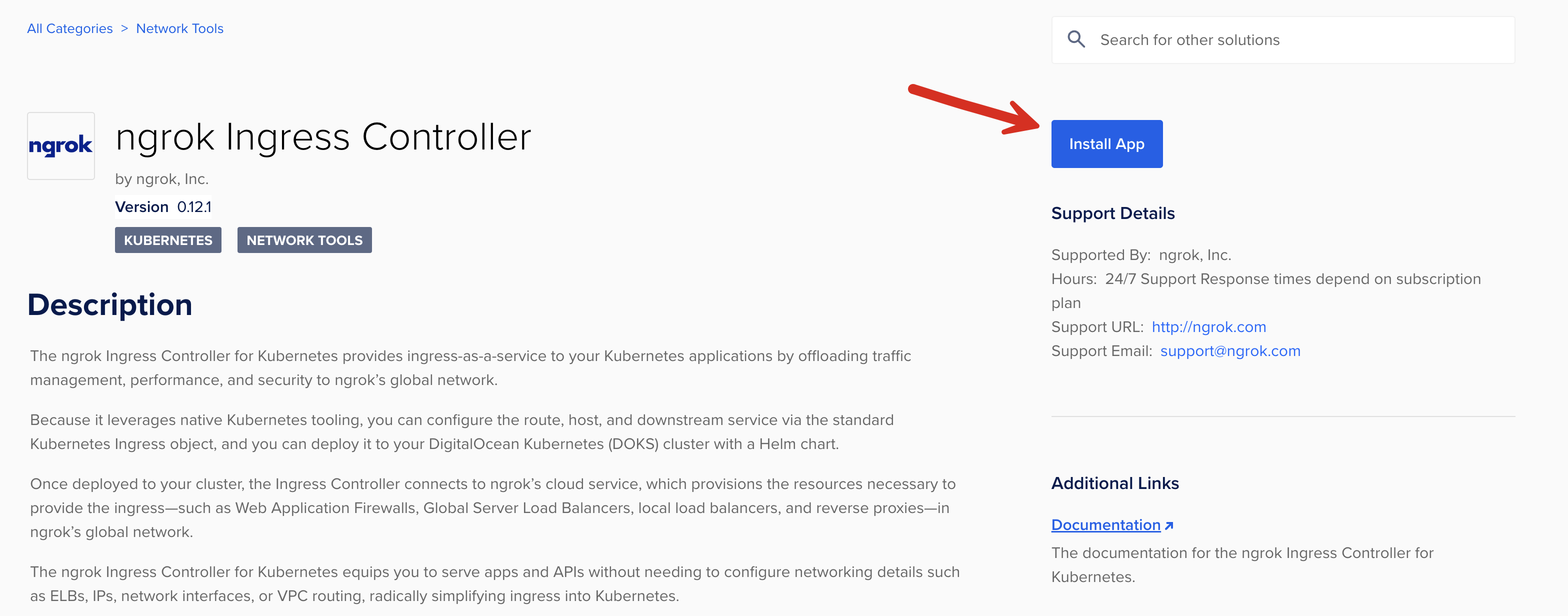 We are excited to share that the ngrok Ingress Controller for Kubernetes is now available in the DigitalOcean, VMWare Tanzu, and Civo digital marketplaces. The ngrok Ingress Controller for Kubernetes provides ingress-as-a-service to your Kubernetes applications by offloading traffic management, performance, and security to ngrok’s global Points of Presence (PoPs). We’ve partnered with Kubernetes service providers to create an optimized experience for our customers.