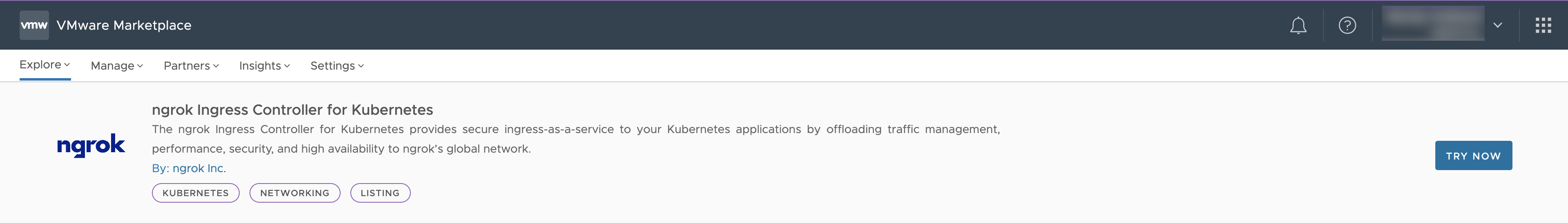ngrok Ingress Controller for Kubernetes listing in the VMWare Marketplace
