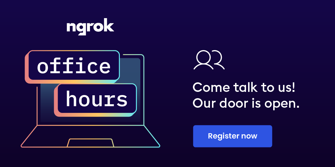 We’ll host Office Hours sessions in the middle of every month, so if you miss your next chance, there will always be another—and you’ll always be able to catch previous Office Hours sessions on ngrok’s YouTube channel.