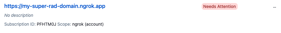 Then you can pass the domain with your ngrok command: ngrok http 3000 --domain=my-super-rad-domain.ngrok.app command.